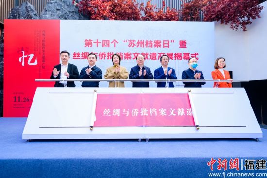 中新网福建新闻11月27日电 (郭喜忠)“海丝情忆•丝绸与侨批档案文献遗产展”26日在江苏省苏州市有南艺术馆开幕。这是首次把“近现代中国苏州丝绸档案”和“侨批档案——海外华侨银信...
