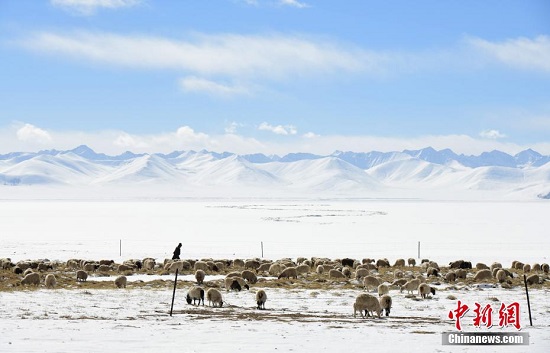1月26日,牧民在纳木错湖边放牧。雪后的西藏纳木错银装素裹,美景如画。中新社记者 贡嘎来松 摄 1月26日,牧民在纳木错湖边放牧。雪后的西藏纳木...