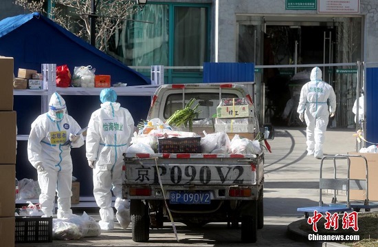 1月27日,志愿者在北京丰台怡海花园恒丰园封控区开展工作。1月26日,丰台区新型冠状病毒肺炎疫情防控工作领导小组办公室发布《丰台区关于部分区域提升管控措施的通知》,提升玉泉营街道京开高...