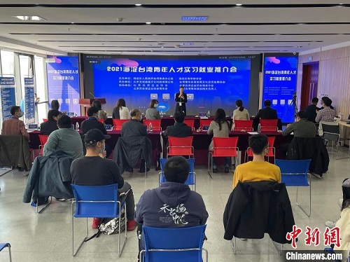 当天,由北京市海淀区台办和海淀区青年联合会主办的2021海淀台湾青年人才实习就业推介会在两岸同步举行,北京海淀区多家企业及近百位台湾学生、青年通过线上线下结合的方式参加活动,陈文成在北京会场作出上述介绍。