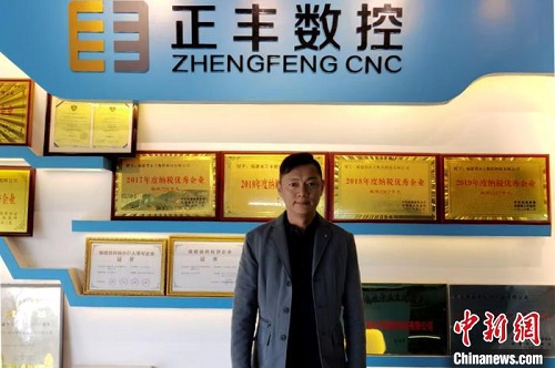 台湾青年陈志明与大陆伙伴合作创办的正丰数控获得不少荣誉。 受访者供图