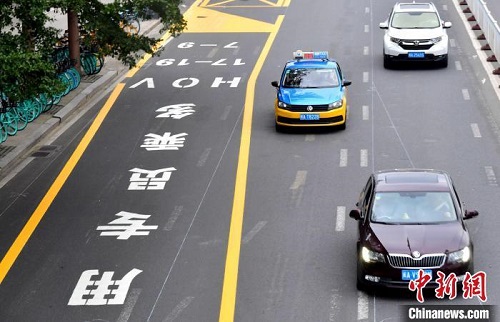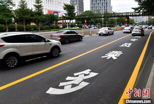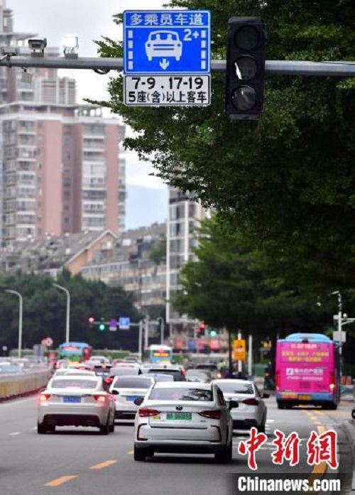 图为福州“浦上大桥—浦上大道”设立的多乘员专用车道格外醒目。 张斌 摄