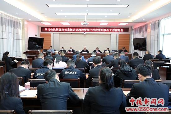 宁德新闻网11月17日电 (郑树泉)11月11日,周宁县人民法院召开传达学习贯彻最高人民法院周强院长来闽调研讲话精神暨周宁法院审判执行工作推进会。会议由党组副书记、副院长许伟主持,全体干警参加会议。