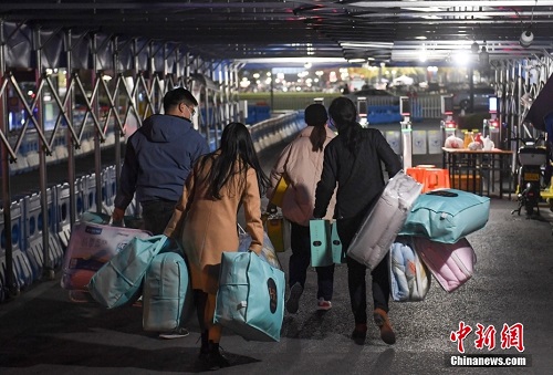 11月25日,多名浙江大学工作人员收到生活物资后返回校园。当日,浙江杭州通报两名来杭返杭人员诊断为新冠肺炎无症状感染者,其中一例为浙江大学教职工。为迅速切断传播链,浙江大学紫金港校区予以封闭管理。 中新社记者 王刚 摄