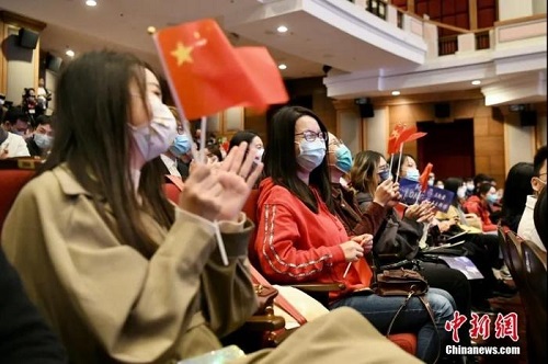 报告会现场座无虚席,既有大学生,也有慕名而来的小学生和白发苍苍的长者。活动现场播放了奥运健儿在比赛中的精彩瞬间,现场掌声雷动,许多观众挥舞国旗和区旗欢呼。