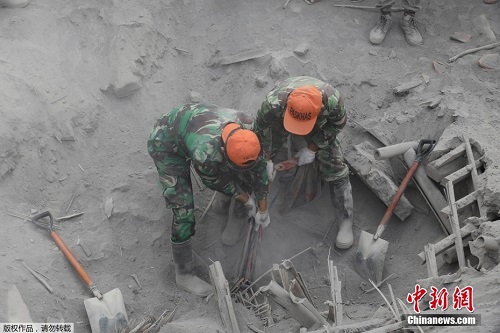 当地时间12月8日,印尼东爪哇省塞梅鲁火山附近,救援队在火山灰中艰难前行并挖掘遇难者遗体。塞梅鲁火山4日下午开始喷出火山灰和烟雾,喷出物不断向东南方向飘散,覆盖火山东南坡上多个乡村。目前,火山喷发已造成数十人死亡,另有多人下落不明。塞梅鲁火山海拔3676米,是爪哇岛最高的火山和知名登山景区,也是印尼约130座活火山之一。