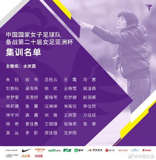 中新网客户端12月9日电 8日晚,中国女足备战第二十届亚洲杯集训名单公布。这是水庆霞正式出任女足主教练后的首份集训名单,唐佳丽、马君、李影诸多名将回归。