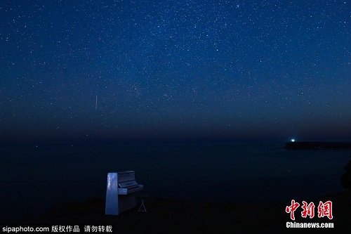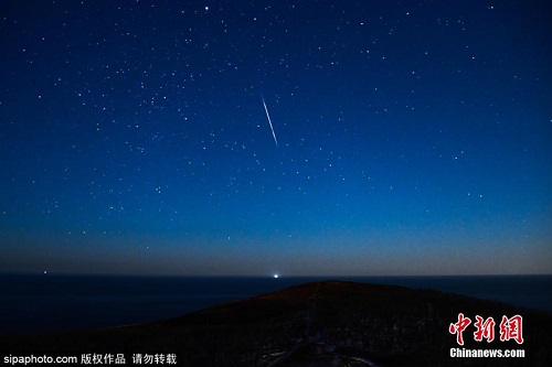 当地时间2021年12月13日,俄罗斯符拉迪沃斯托克,双子座流星雨划过绝美蓝色夜空。 图片来源:Sipaphoto