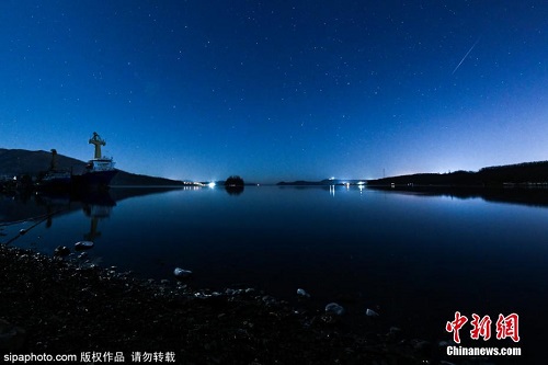 俄罗斯诺维克湾:双子座流星雨绽放静谧夜空