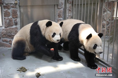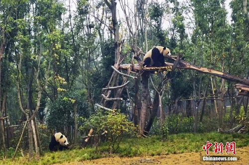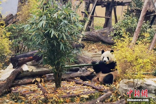 2021年12月13日,四川成都大熊猫繁育研究基地发布消息称,随着基地扩建区兽舍已经完成有毒有害物质检测和环境消杀工作,首批43只大熊猫和10只小熊猫,正陆续搬入“新家”,扩建区计划于2022年年初预开园。图为大熊猫走出场外活动。 图片来源:ICphoto