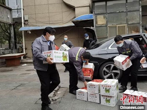 爱心台企代表为街道、社区送去日常物资 张志鸿供图