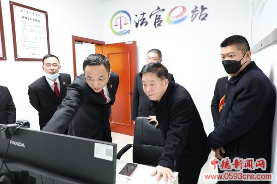 在周宁法院,董明亮详细了解该院诉讼服务中心、诉非联动中心、普惠金融司法协同调处中心和“法官e站”的建设和运行情况,对该院运用信息化成果积极搭建多元解纷平台的模式予以肯定。
