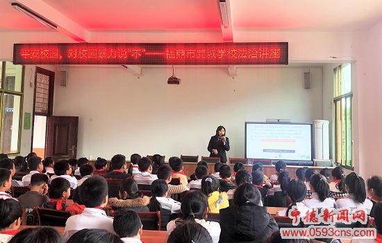近日,福鼎法院干警受邀前往巽城学校开展以“平安校园,对校园暴力说‘不’”为主题普法讲座。期间结合真实案例、互动答疑,讲授校园霸凌行为的危害性,引导学生有效预防、正确处理校园暴力,切实提高法治意识。(文/图 高超)