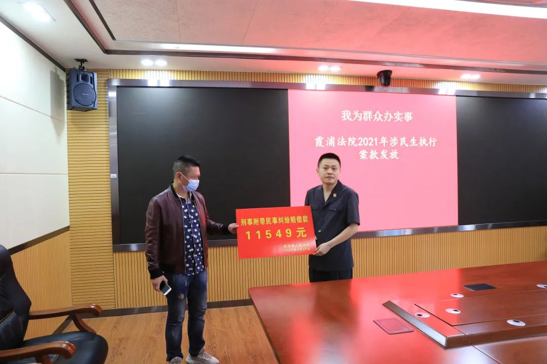 当天,霞浦法院开展“我为群众办实事”涉民生执行案款集中发放的活动,并邀请人大代表詹秋霖参与并监督发放款项仪式。