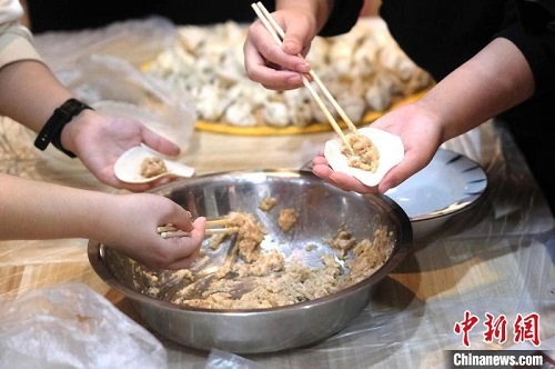 南京农业大学学生包饺子过冬至为考研加油。 泱波 摄