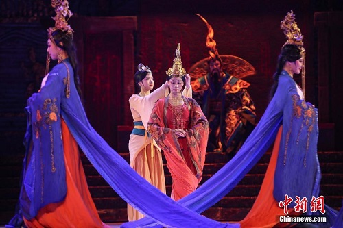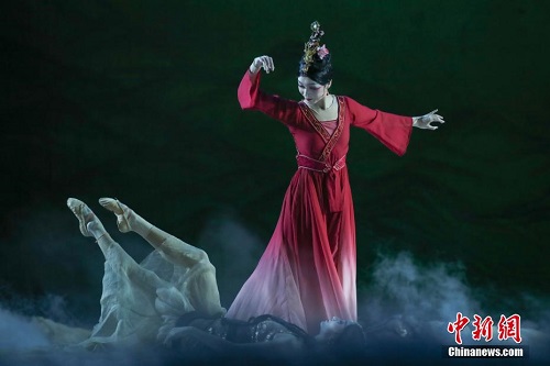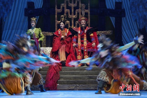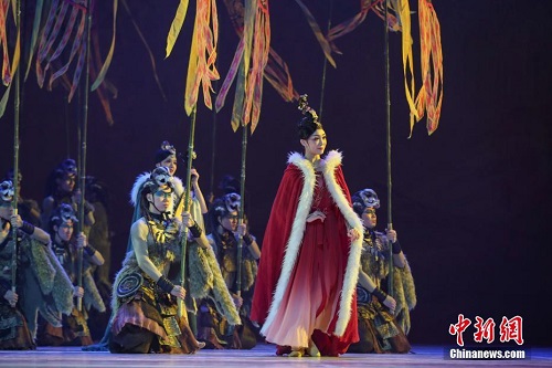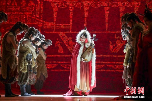 12月21日晚,由中国歌剧舞剧院排演的2021年多彩贵州文化艺术节展演舞剧《昭君出塞》在贵州省贵阳市精彩上演。 中新社记者 瞿宏伦 摄