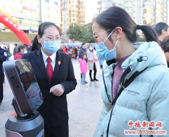 日前,寿宁法院携带普法机器人“小寿法”到寿宁县东区梦龙广场开展国家宪法日普法宣传活动。一位路过的群众为了验证机器人的法律咨询服务功能,与机器人开展“人机对话”,机器人很快用语音回复,其智能全面的回答引得围观群众哈哈一笑的同时,也对法律产生了浓厚兴趣。