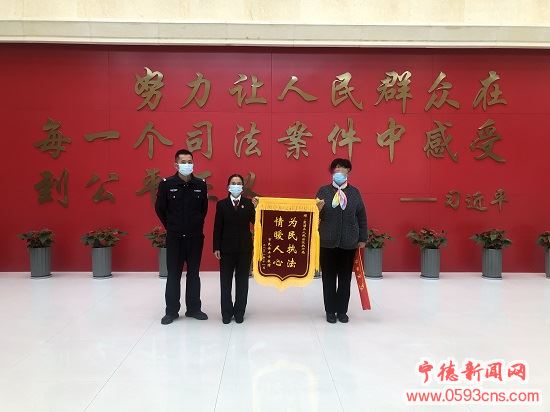 近日,案件当事人徐某某将一面印有“为民执法情暖人心”的锦旗送至霞浦法院,并对该院认真负责、热情服务,为其申请司法救助解决实际困难表示衷心感谢。