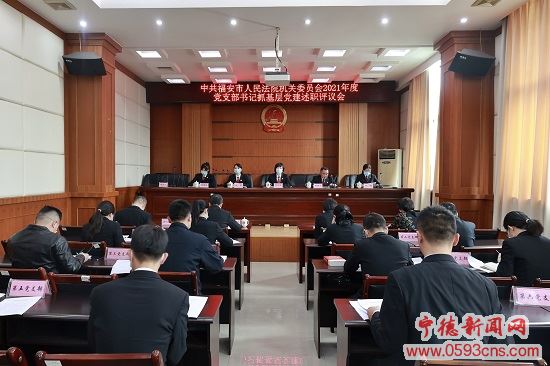 宁德新闻网1月7日电 (林婧雯)为进一步夯实基层基础,加强党支部标准化、规范化建设,1月5日,福安法院召开2021年度党支部书记述职评议会。院党组成员、政治部主任、机关党委书记阮明霞及机关党委各委员、各党支部书记及委员、党员代表参加会议。