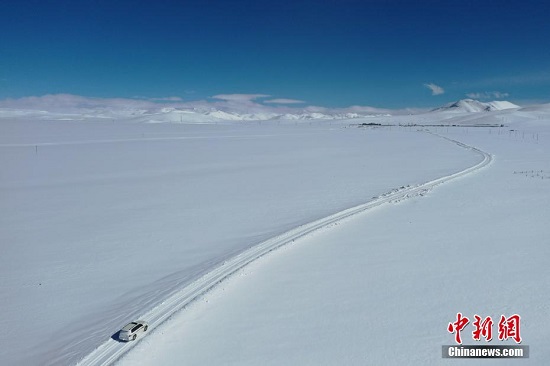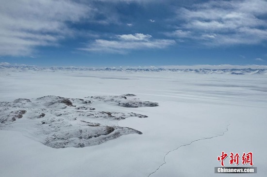 1月25日拍摄的纳木错雪景。雪后的西藏纳木错银装素裹,美景如画。(无人机照片)中新社记者 贡嘎来松 摄