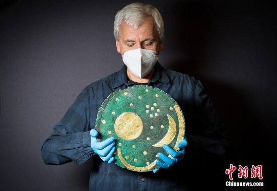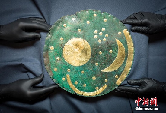 当地时间2022年1月26日,英国伦敦,世界上“最古老的星图”(NebraSkyDisc)拥有3600年的历史,将于大英博物馆展出。图片来源:视觉中国