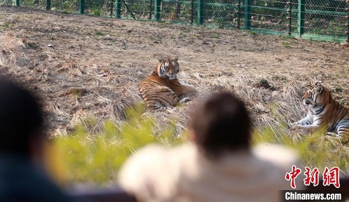1月30日,游客在扬州市动物园看虎。 孟德龙 摄