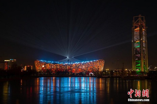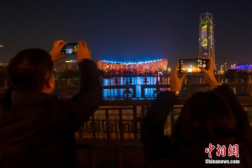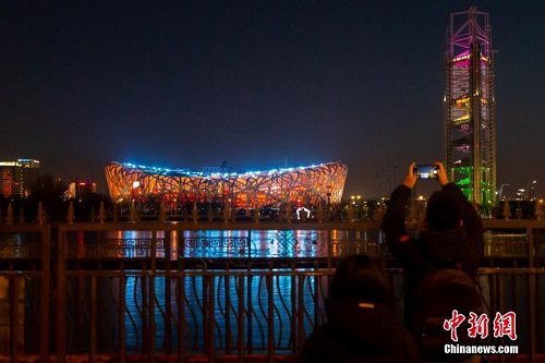 2月2日,北京,夜色中的国家体育场“鸟巢”吸引市民。北京2022年冬奥会开幕式将于2月4日晚在国家体育场“鸟巢”举行。 中新社记者 易海菲 摄