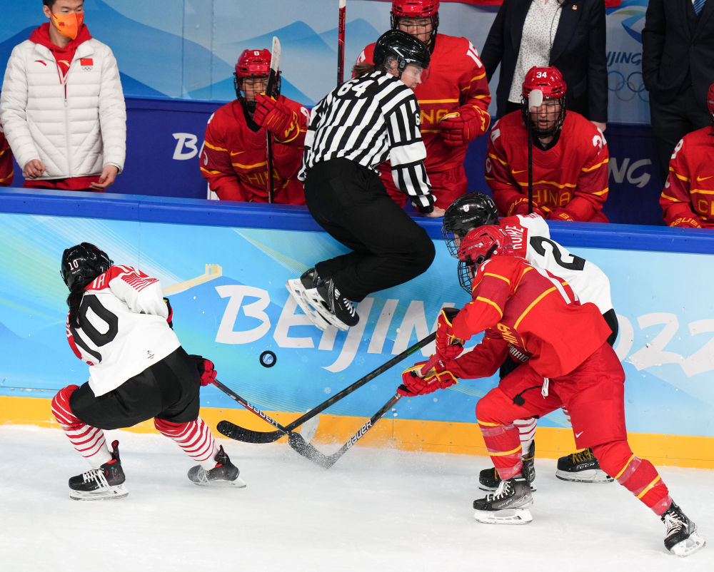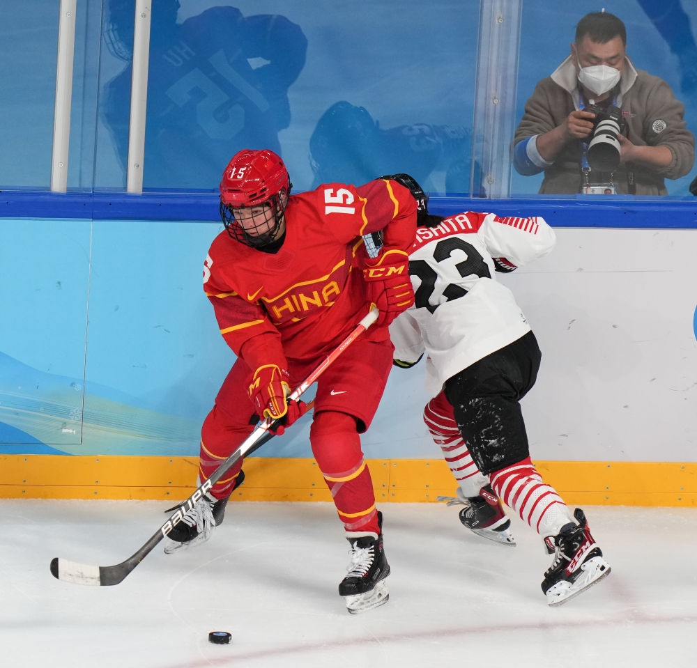 2月6日,中国队球员张喜芳(右)在比赛中。 新华社记者 孟永民 摄
