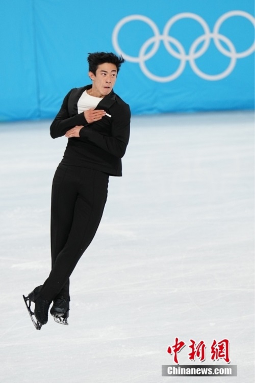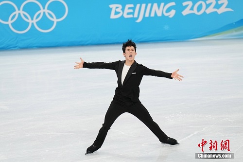 2月8日,北京冬奥会花样滑冰男子单人滑短节目比赛在首都体育馆进行。美国选手陈巍以总得分113.97分,创造了短节目世界纪录。 中新社记者 崔楠 摄