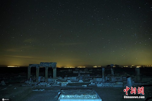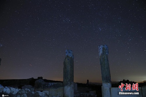 当地时间2021年2月5日,土耳其乌萨克省乌鲁贝区,星空下的Blaundus古城废墟。 图片来源:ICphoto