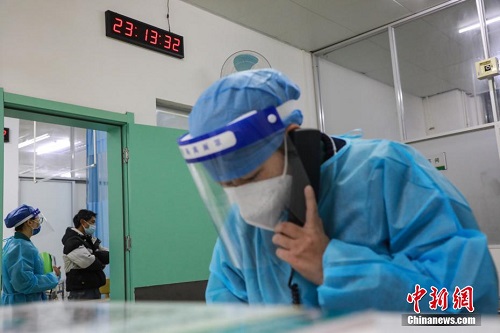 2月11日晚,广西百色市德保县,一名急救电话接线员在工作中。当日,广西百色市新冠肺炎疫情防控新闻发布会通报称,广西百色本轮疫情正处于控制关键期,当地从严从速从细从实切断疫情传播链条,坚决遏制疫情蔓延扩散。 王伟臣 摄