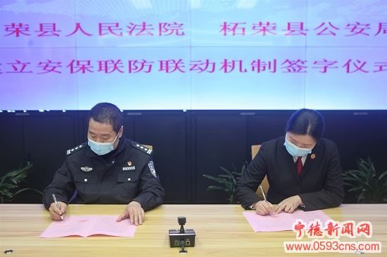 宁德新闻网2月28日电 (孔敏)日前,为切实加强法院机关及双城法庭的安全保卫工作,保障审判机关和干警及诉讼参与人的安全,严防各类恶性事件发生,全面提高防御、发现、控制和打击能力,柘荣县人民法院、柘荣县公安局举行建立安保联防联动机制签字仪式。