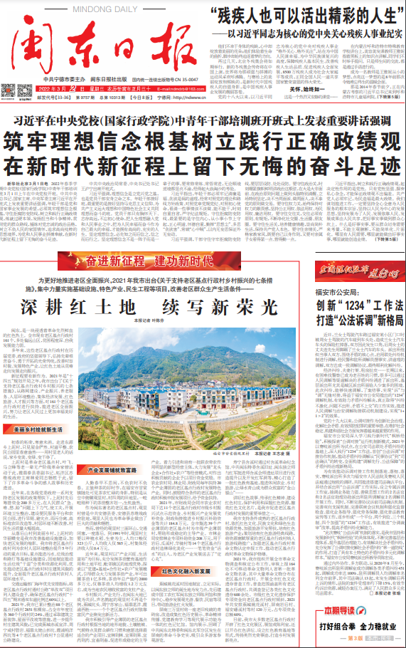 新征程要有新作为。2021年是“十四五”规划开局之年,我市出台了《关于支持老区基点行政村乡村振兴的七条措施》,从路网建设、产业振兴、养老服务、人居环境整治、集体经济发展、红色旅游、人才振兴等方面,对161个老区基点行政村进行扶持,推进老区全面振兴,努力让老区人民过上更加幸福美好的生活。