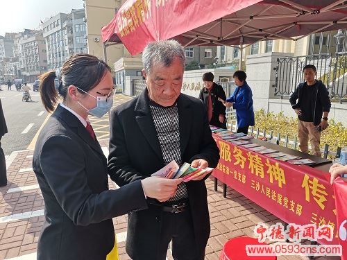 宁德新闻网3月9日电 (林清清 陈敏)近日,霞浦法院以“学雷锋纪念日”为契机,联合三沙镇政府机关党支部、三沙商会党支部等,组织党员干警前往三沙镇开展“践行志愿服务精神,传递平安法治力量”志愿服务活动,大力弘扬雷锋精神。