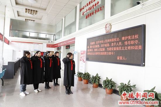 近日,屏南法院开展“女法官国际日”活动,组织全院女法官进行公开宣誓,增强女法官们的职业尊崇感、使命感和责任感,立足岗位、创先争优,努力做法治建设的践行者。(文/图 林宗瑜)