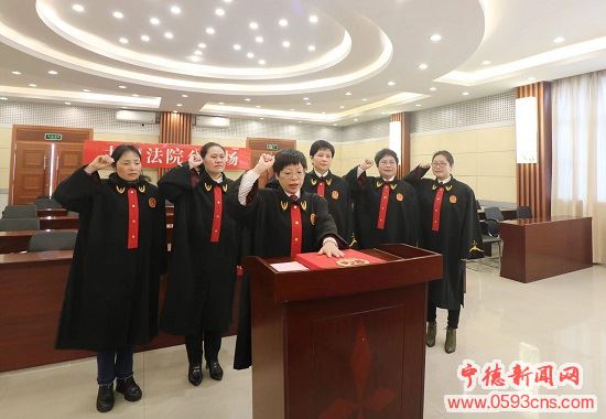 3月10日,为迎接第一个“女法官国际日”,古田法院举行女法官宪法宣誓仪式,在党组副书记、副院长兰惠琴同志的领誓下,5名女法官身着法袍庄严宣誓,进一步增强女法官们的职业尊荣感、使命感和责任感。(文/图 李金凤)