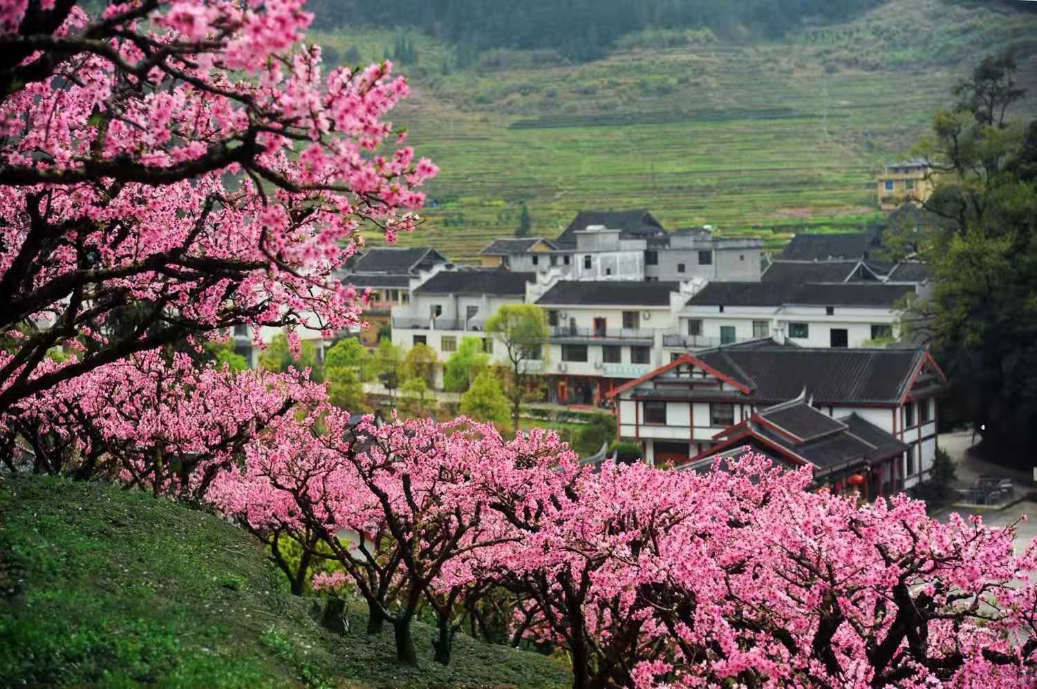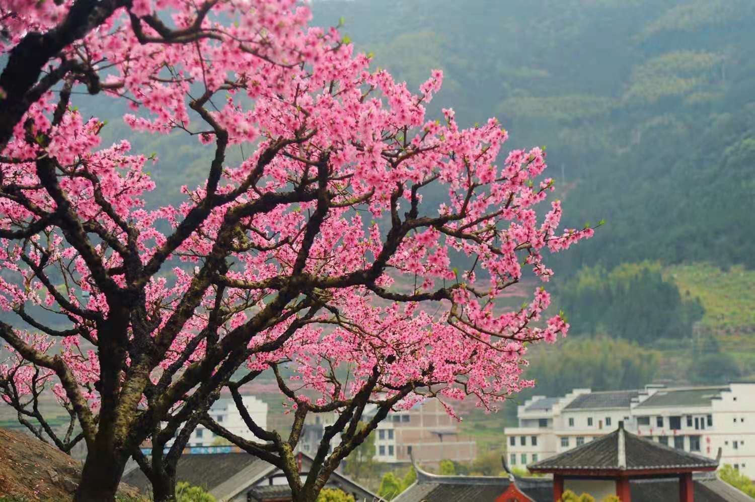 日暖风和的三月,福安白云山风景区内的桃花朵朵绽放,青山绿水粉黛白墙,相互衬映,添了几分韵味。(郭建平 摄)