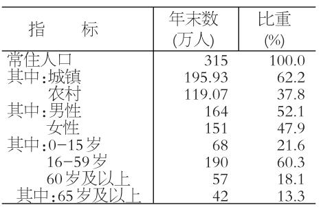 全市年末常住人口315万人,与上年末持平。其中城镇常住人口195.93万人,占总人口比重(常住人口城镇化率)为62.2%,比上年末提高1.2个百分点。全年出生率9.03‰,死亡率6.92‰,自然增长率2.11‰。