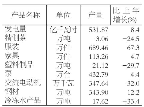 全年全部工业增加值1500.88亿元,比上年增长24.9%。规模以上工业增加值增长32.5%。在规模以上工业中,分经济类型看,国有及国有控股企业增加值增长34.3%;股份制企业增长44.0%,外商及港澳台商投资企业增长12.3%,私营企业增长42.3%。分轻重看,轻工业增长60.3%,重工业增长13.1%,重工业增加值占比44.3%。分门类看,采矿业下降9.0%,制造业增长39.3%,电力、热力、燃气及水的生产和供应业增长11.3%。工业产品销售率100.0%,比上年提高2.2个百分点。