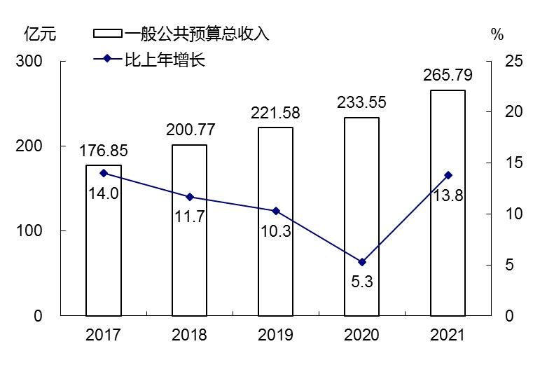 图2 2017-2021年一般公共预算总收入及其增长速度