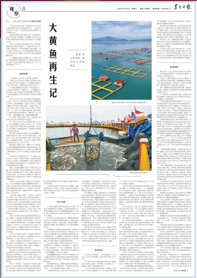 海洋孕育了生命,海洋生态需要大家共同维护。历史是最好的教科书,大黄鱼的重生凝聚了几代科技工作者的艰辛付出。