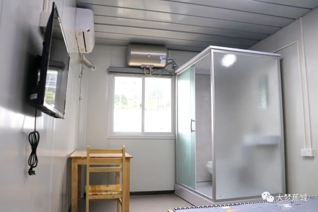 在方舱隔离点内部,记者看到,走廊干净整洁,房间宽敞明亮,电视、衣柜、空调等家具一应俱全,通风状况良好,此外,室内还安装了紫外线消毒设备,进一步强化房间安全性。