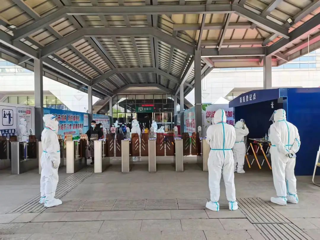 在宁德动车站,党员应急突击队员全力维护出站口通道秩序,合理引导大家排队做好核酸预约登记和采样工作。