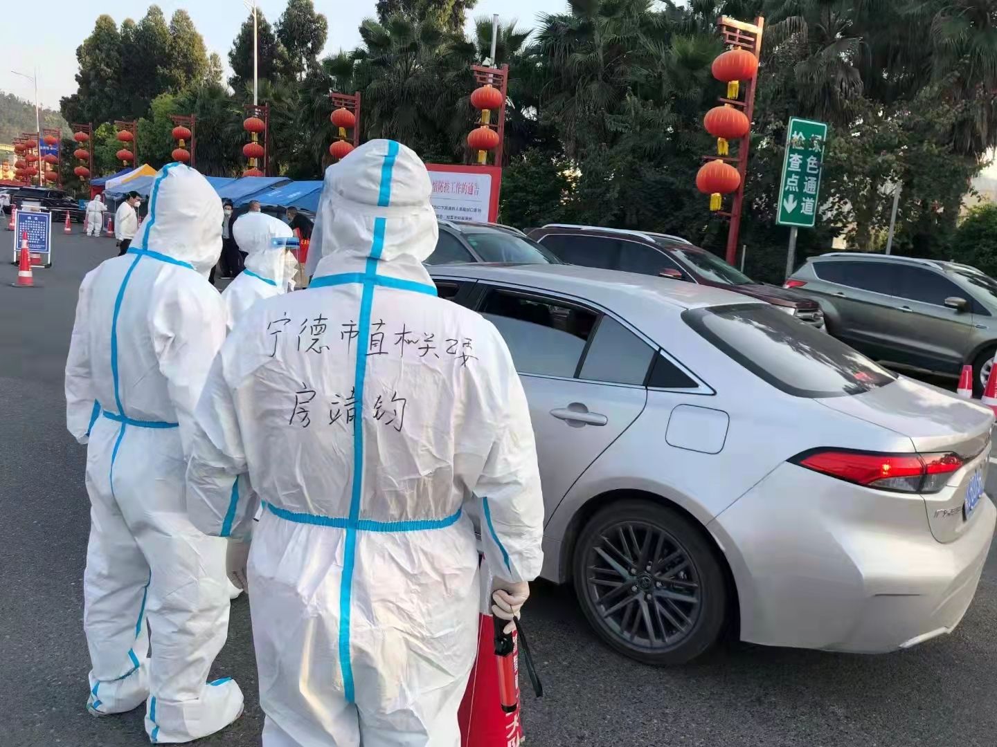 在宁德高速南、北收费站出口,党员应急突击队员积极协助工作人员一同登记入宁车辆人员的身份证、健康码、14天行程卡信息等,引导无48小时内阴性核酸检测报告的外地司乘人员进行核酸检测,全力阻断传播链条,坚决遏制疫情蔓延。