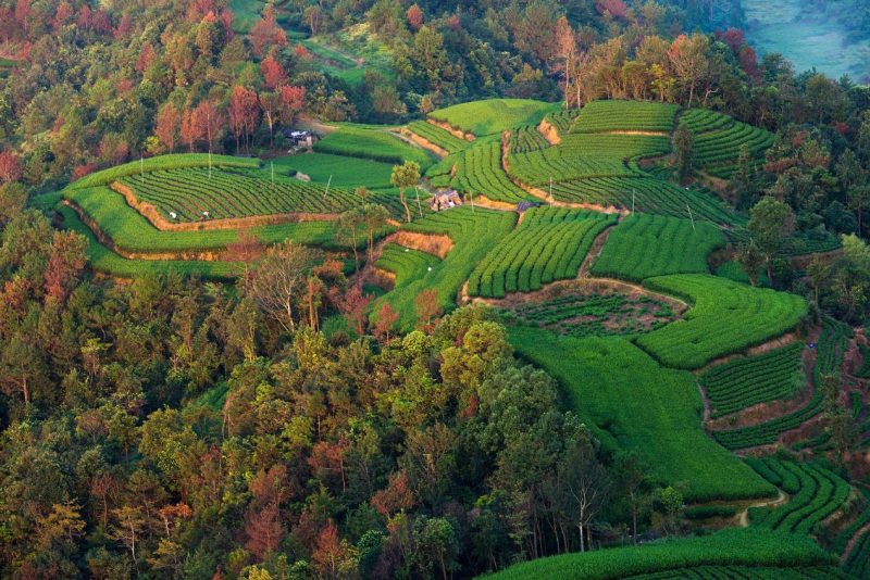 山岚与海雾相拥、人与自然共生的优美生态,是福鼎白茶卓越品质的前提条件。福鼎积极探索“茶——林——绿肥”和“茶——防护林 ”的复合种植方式,形成了梯壁牢固、梯层整齐、水土保持良好的生态茶园模式。有的茶园还采用“点状种植”“大树留养”种植方式,茶叶抗霜冻能力强,品质好,冲泡之后更具香气,更具甜感。