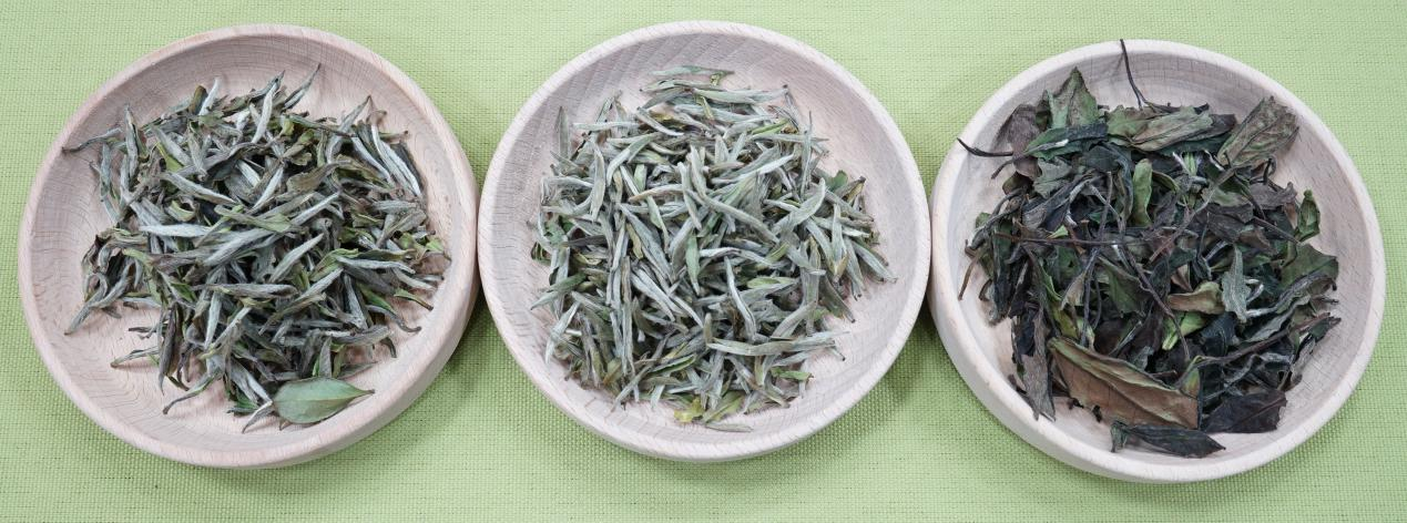 从左至右分别为牡丹、银针、寿眉。供图:福鼎市茶产业发展中心