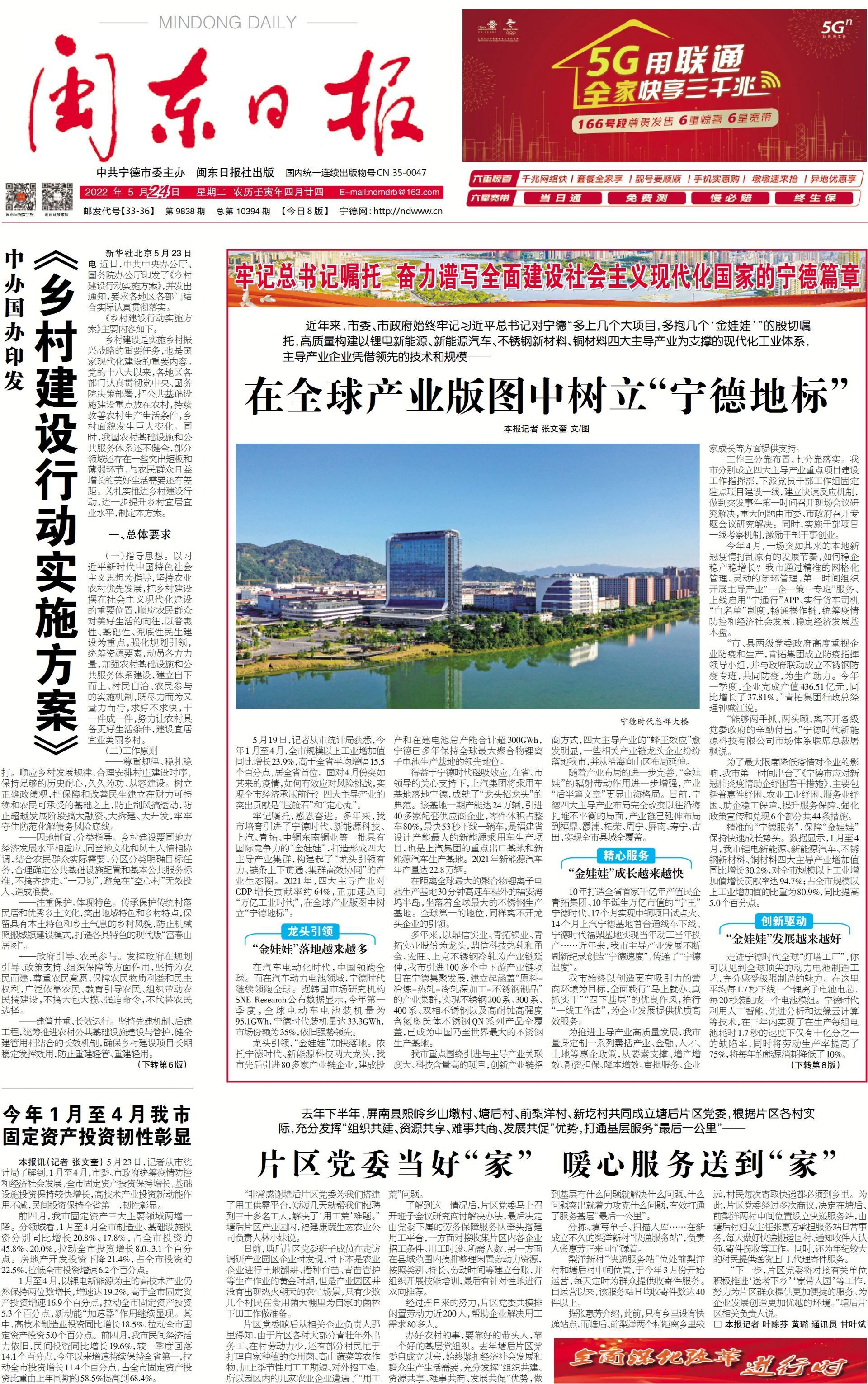 随着产业布局的进一步完善,“金娃娃”的辐射带动作用进一步增强,产业“后半篇文章”更显山海格局。目前,宁德四大主导产业布局完全改变以往沿海扎堆不平衡的局面,产业链已延伸布局到福鼎、霞浦、柘荣、周宁、屏南、寿宁、古田,实现全市县域全覆盖。