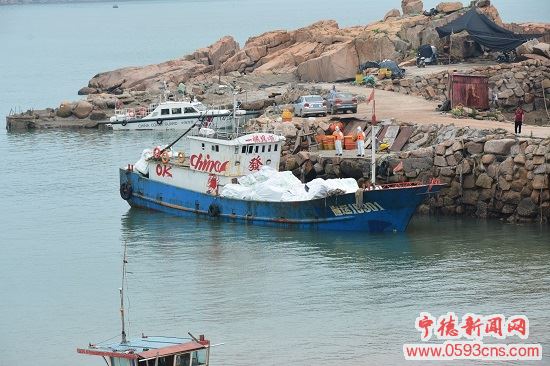 宁德新闻网6月8日电 (陈宇飞 李庆祝)6月4日,宁德海警局联合霞浦县公安局在吕峡丹湾码头附近海域成功查获1起非法走私冻品案,现场抓获涉案人员5名,查扣涉嫌走私货车2部、吊车1辆,查获涉案冻品约80吨,涉案金额约300万元。