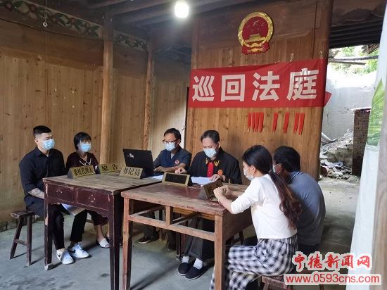 “现在开庭!”近日,周宁县人民法院咸村人民法庭法官一行走进玛坑乡芹太坵村,开庭审理了一起邻里纠纷案件。(文/图 李慧)