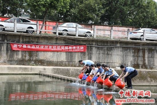 此前,周宁县某企业因违法造成生态环境损害,为落实生态环境损害赔偿制度,经法院和有关部门共同磋商,由该企业以购买鱼苗进行增殖放流的方式,履行生态修复义务。